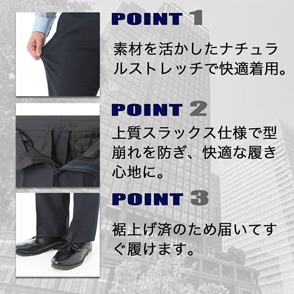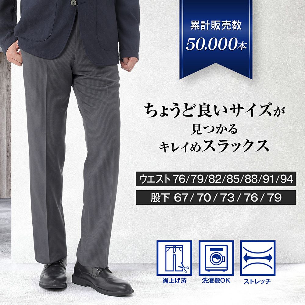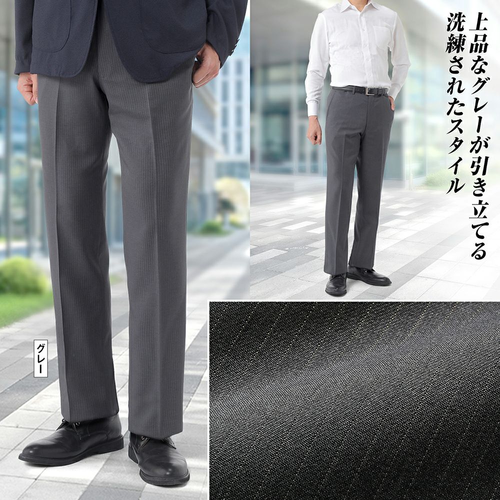 メンズ/ノータック/裾上げ済み/ストライプビジネススラックス