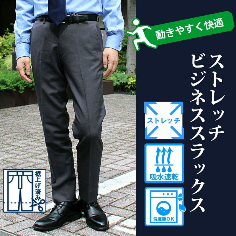 メンズ/ノータック/裾上げ済み/2WAYストレッチDRYビジネススラックス