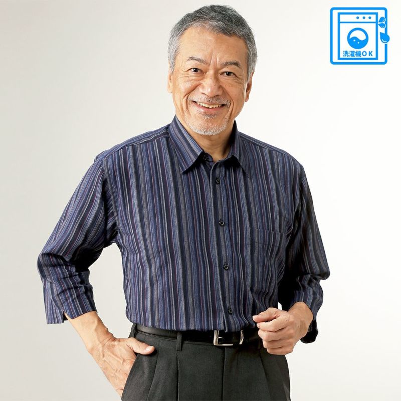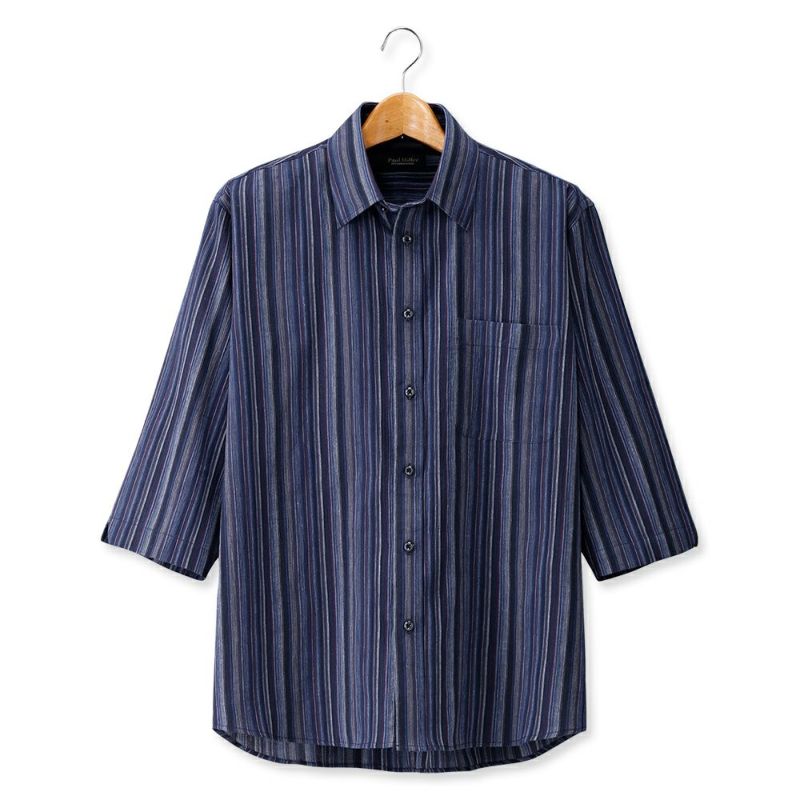 サラっと素肌に心地よい、麻入り楊柳7分袖シャツ。