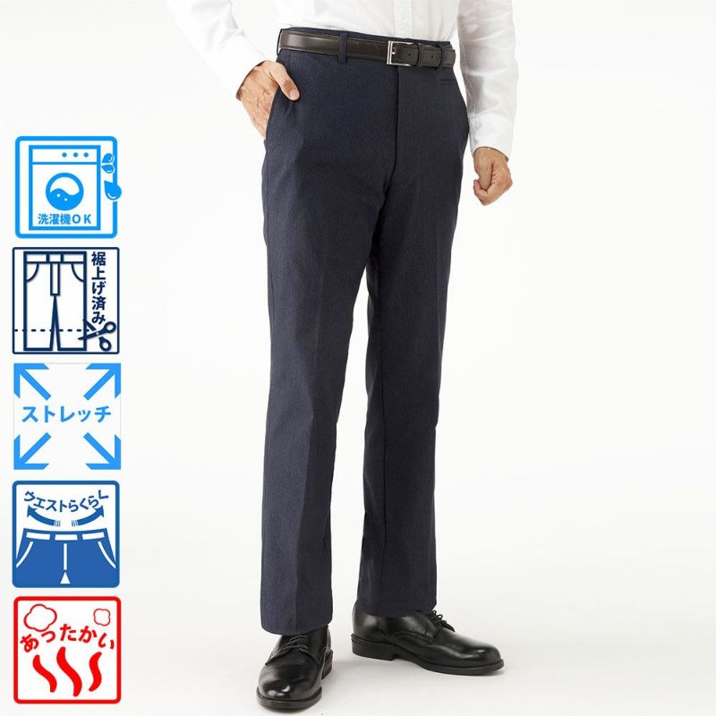 メンズ/ノータック/裾上げ済み/ハイストレッチ裏起毛スラックス