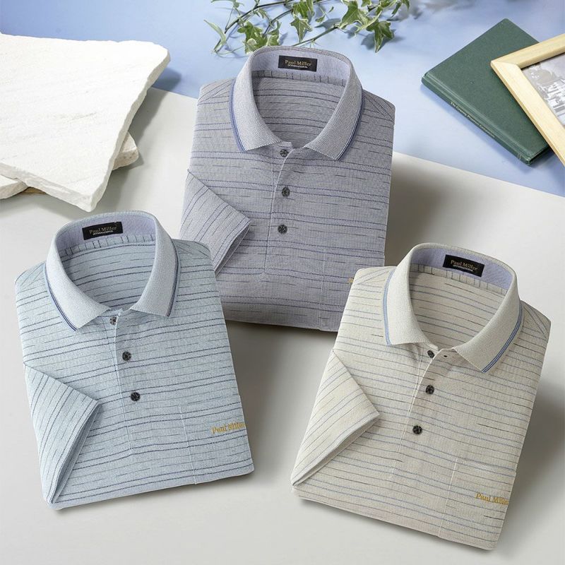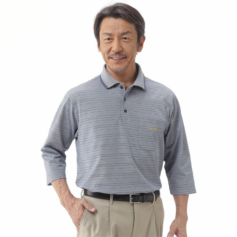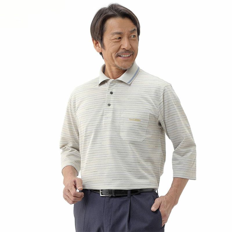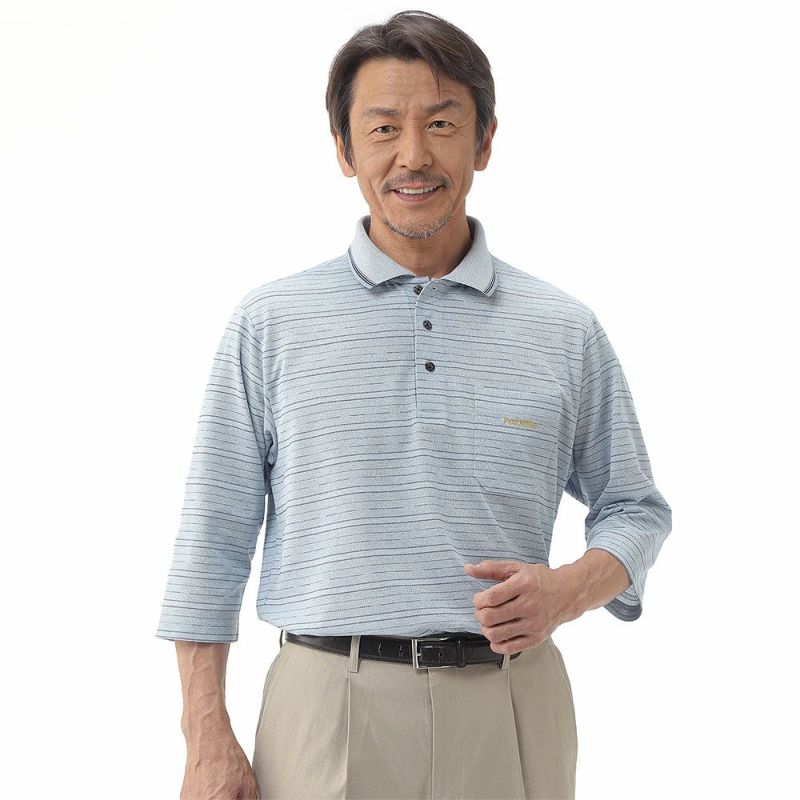 先染めならではの深みのある上品な色合いの7分袖ポロシャツ。