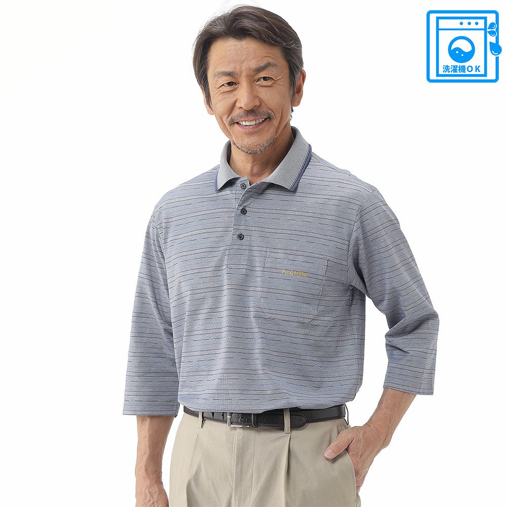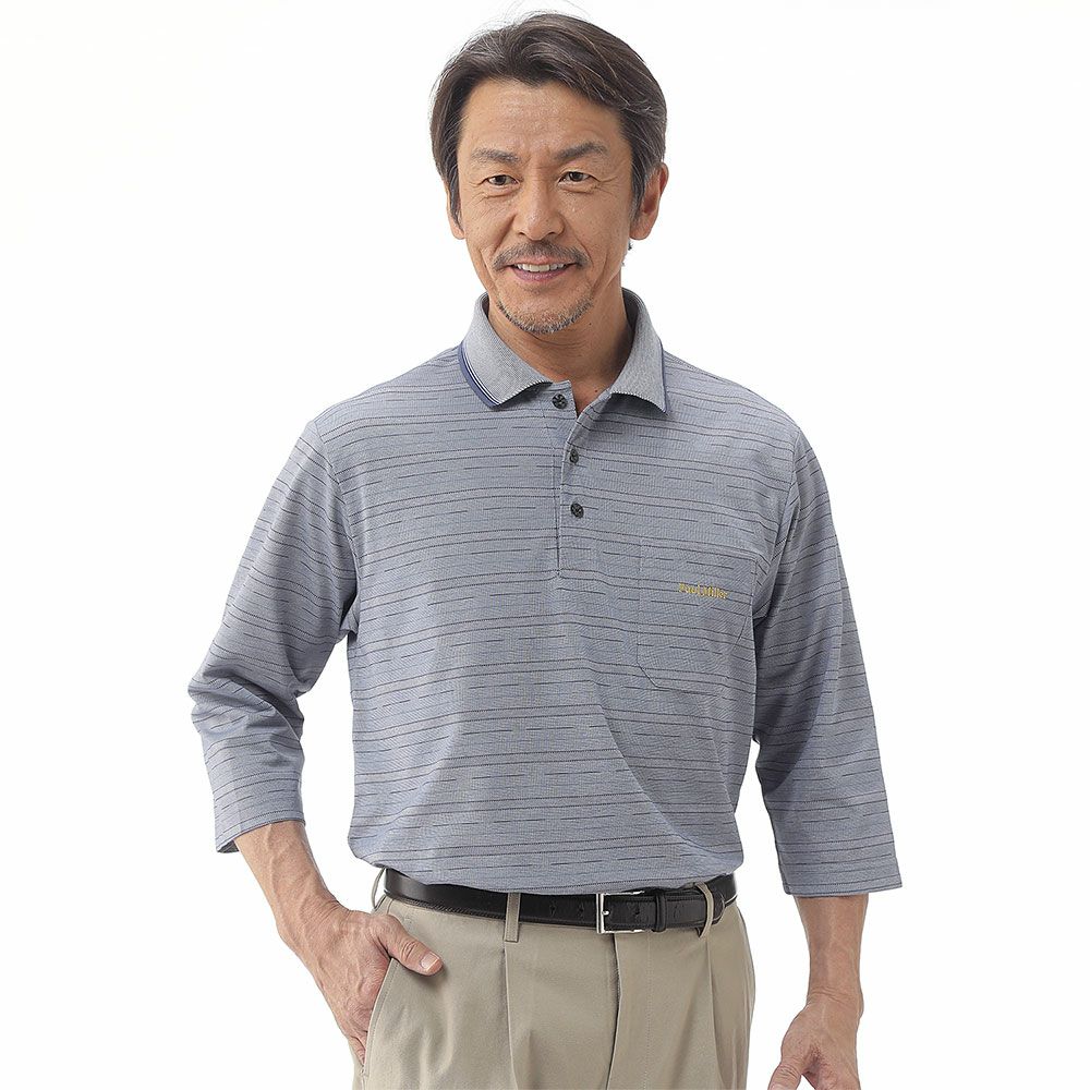メンズ/先染め格子柄長袖ポロシャツ