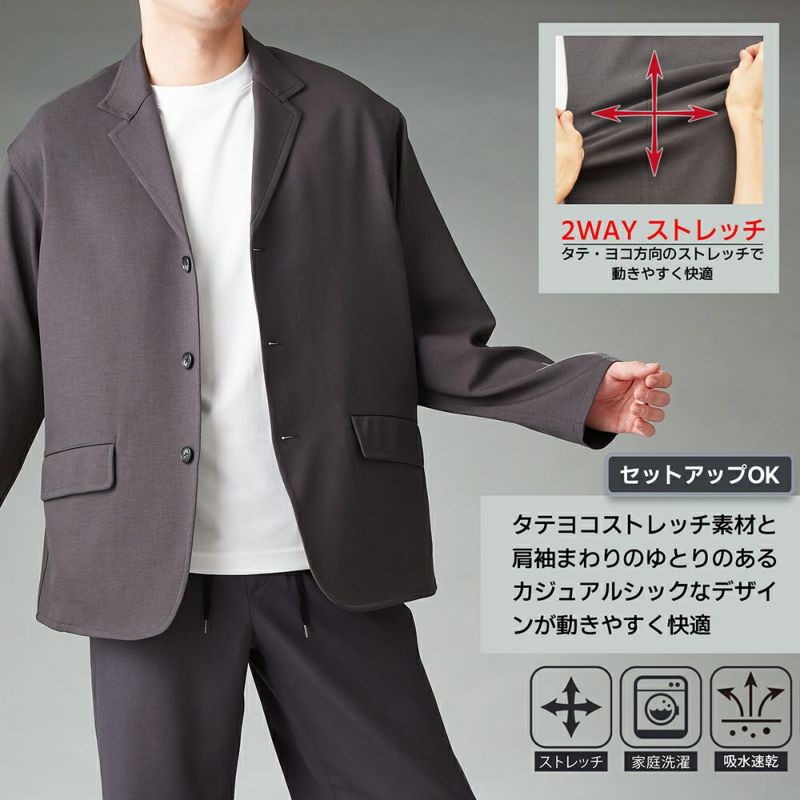 カジュアルながらもシックな雰囲気のイージージャケット。ゆったりとしたシルエットで、着こなし次第で幅広いシーンで活躍します。