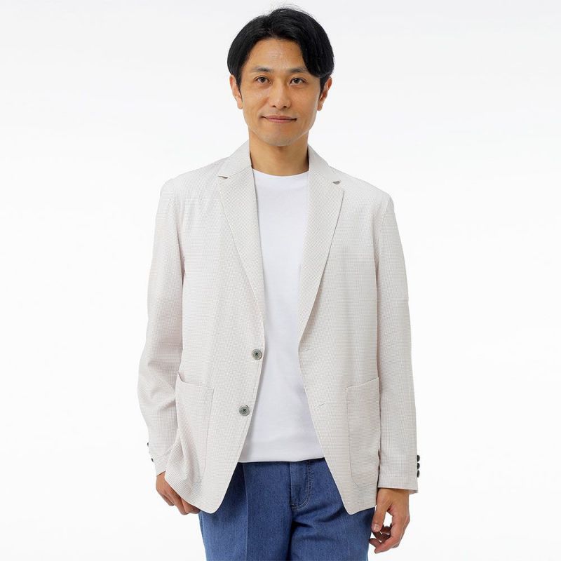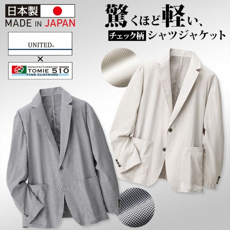 マイクロチェック柄が若々しくさわやか。Tシャツの上からさっとシャツ感覚で羽織れ、春先から夏場まで着用できます。