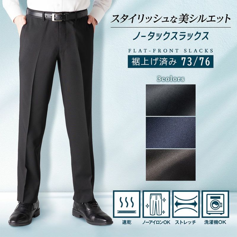3. メンズ/ノータック/裾上げ済み/DRY無地ビジネススラックス