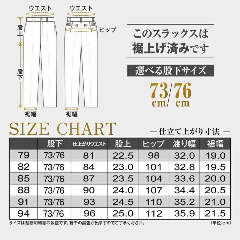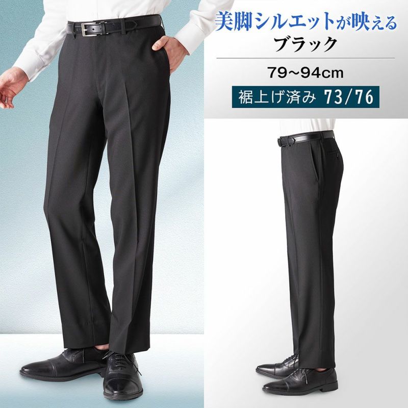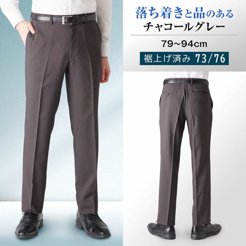 裾上げ済みなので、届いたらすぐ履けます。ご家庭の洗濯機で洗えるウォッシャブル仕様で、洗濯後でも折り目、センタープレスがとれにくく、シワになりにくい素材なのでアイロン不要。旅行・出張などにも便利です。
