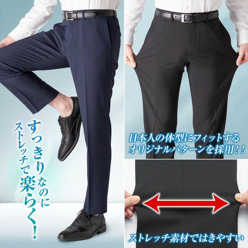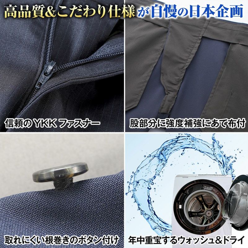 季節を問わずに使用できるので、色違いでの購入や替えズボンにもお勧めです。オフィス・飲食店等のユニフォームとして、また急な冠婚葬祭用としても着用いただけます。