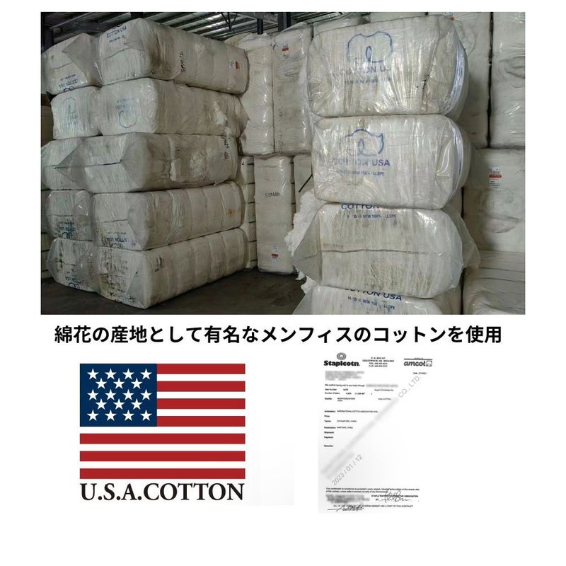 素材にはUSAコットンとポリエステルの混紡糸を使用。