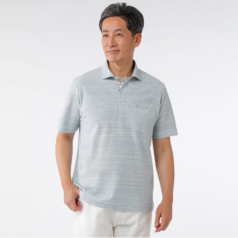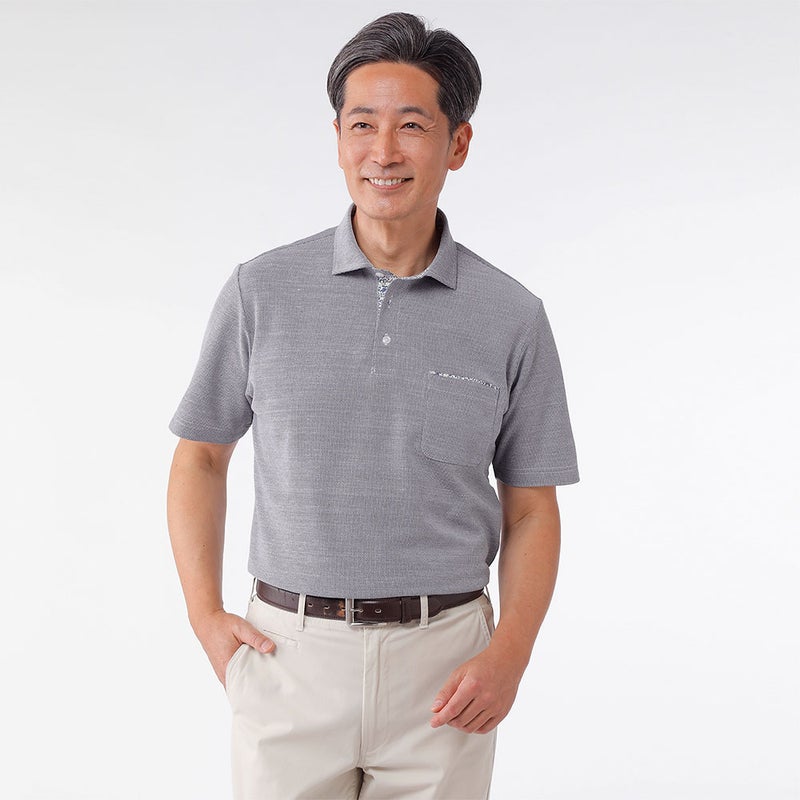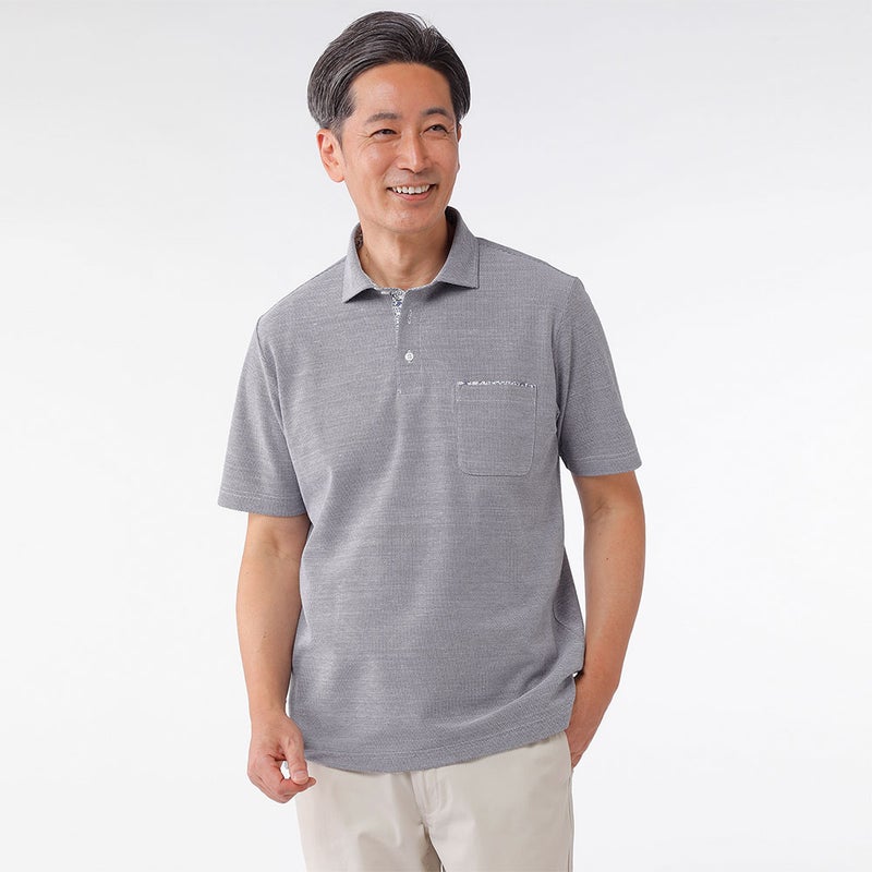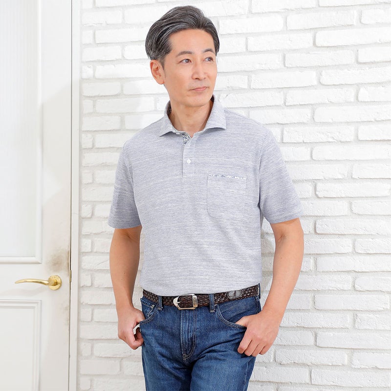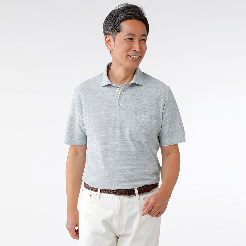 表情豊かなスラブ糸と、通気性に優れた鹿の子編みを組み合わせた、夏に最適な半袖ポロシャツ。