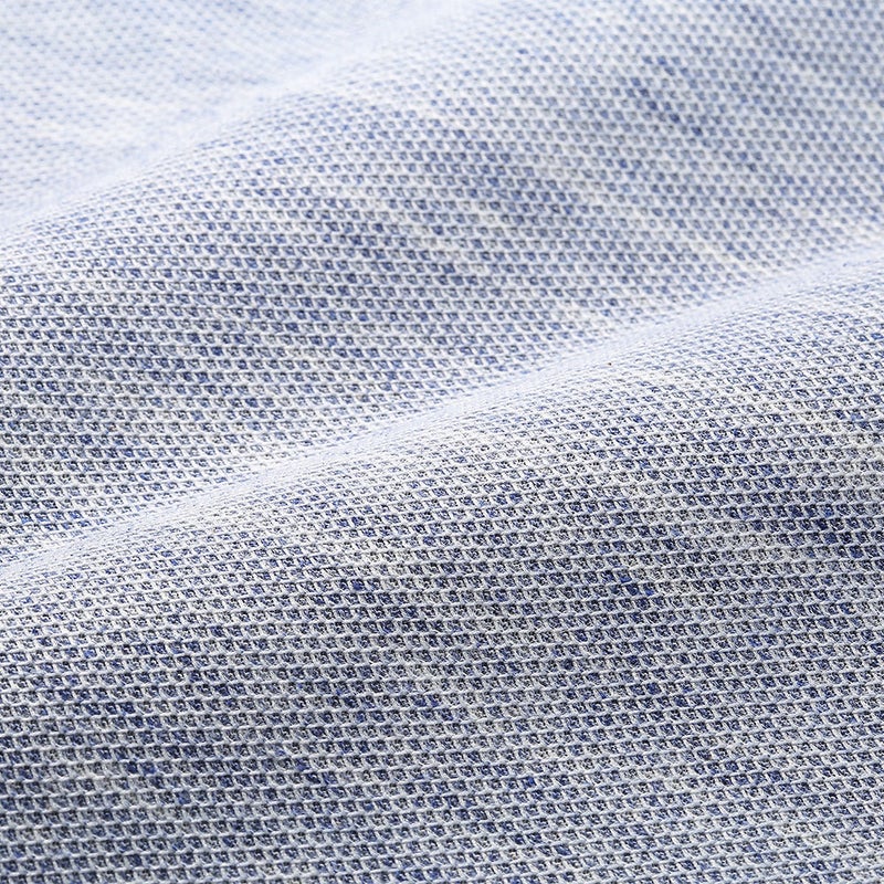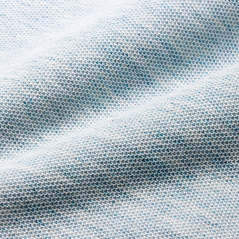 生地には、太さにムラのあるスラブ糸を使用することで、無地ながらも奥行きのあるナチュラルな風合いを実現。さらに、凹凸感のある鹿の子編みが肌との接地面を減らし、汗ばむ季節でもさらりと快適な着心地をキープします。