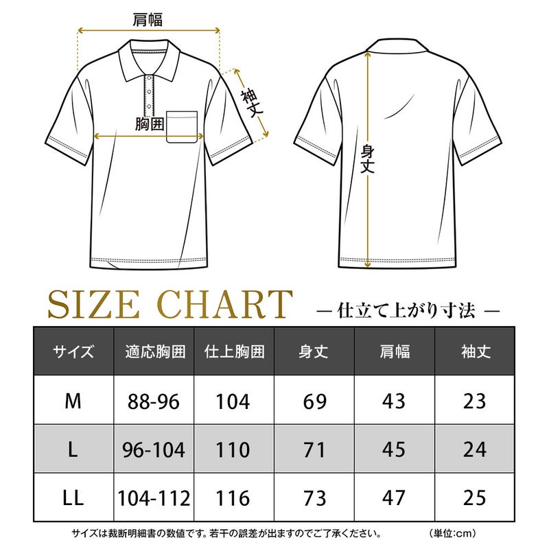 | 適応胸囲 | 仕上胸囲 | 身丈 | 肩幅 | 袖丈 | |