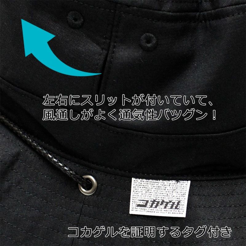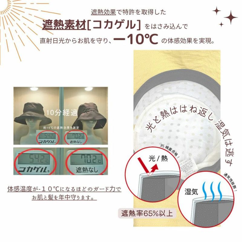 「コカゲル・ハット」は特許取得の3層構造で、太陽からの日差しをMAX65%カット。体感温度は-10℃以上という驚異の性能で、まるで木陰にいるような涼しさを実現します。