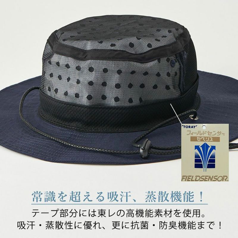 頭のてっぺんには風通し用のスリットもあり、ハット内に溜まった熱気を逃がし通気性抜群。また、額に触れる部分には汗を吸収して速乾させる「フィールドセンサー」という素材を採用し、着用中の不快感も軽減します。