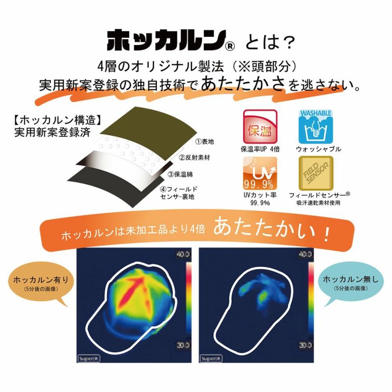 4層の独自構造で抜群の保温性を実現した「ホッカルン®」の防寒ドッグイヤーキャップ。