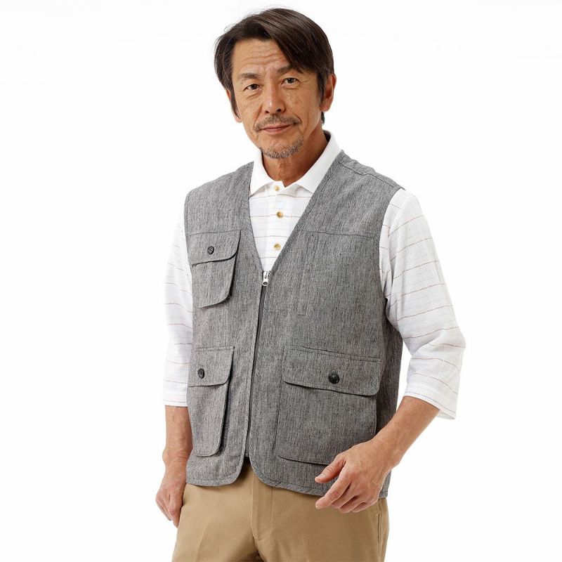 左胸のファスナー付きポケットなど収納力に優れる6箇所のポケットを装備。行楽にはもちろん、ちょっとしたお出かけにも最適です。