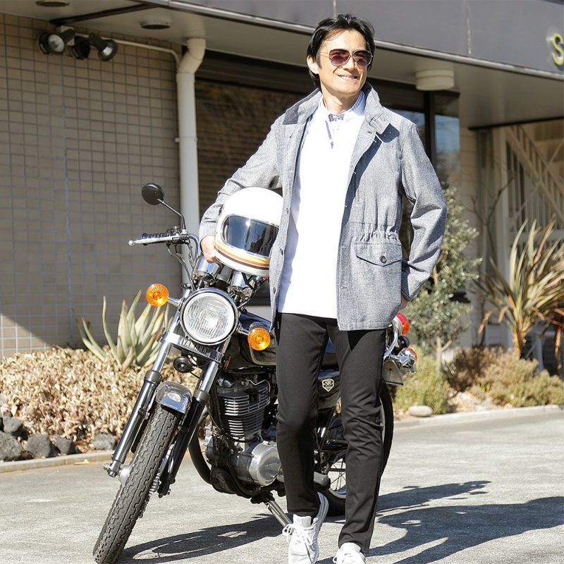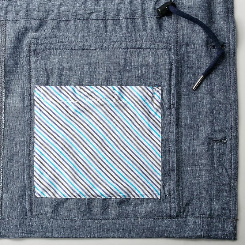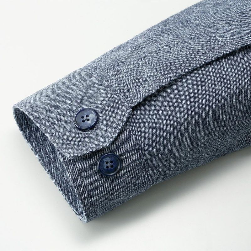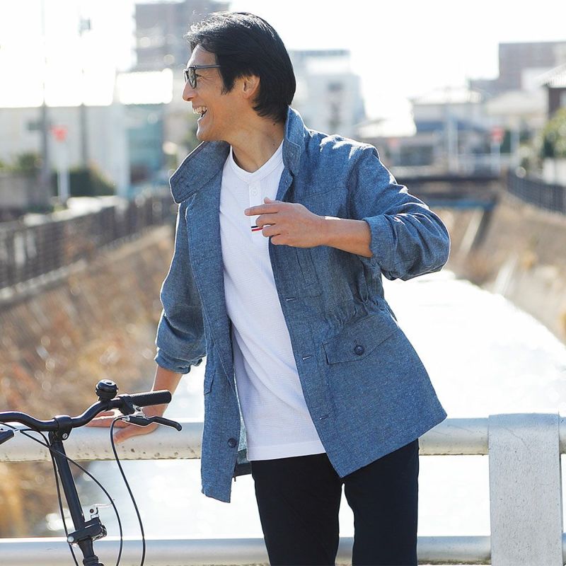 大人の休日カジュアルにぴったりなデニム調ブルゾン。麻混の平織りシャンブレー生地を使用して、爽やかなアウターに仕上げました。