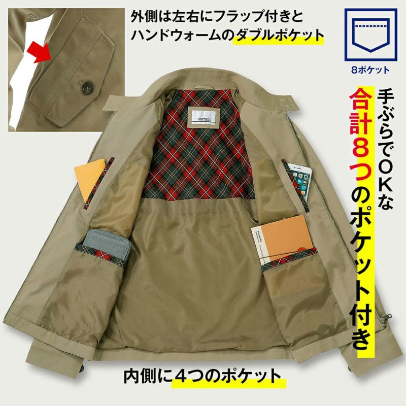 ポケット:合計8個/表側両脇フラップ付きポケット、表側両脇ハンドウォーマーポケット、内側両胸ポケット、内側両裾ポケット