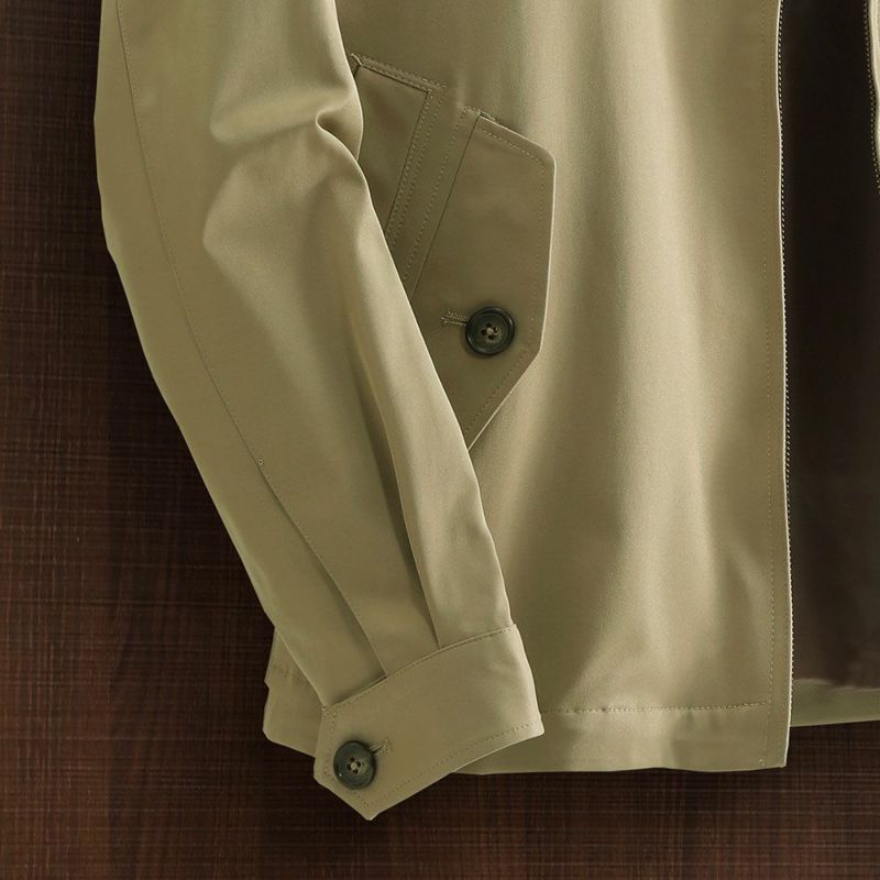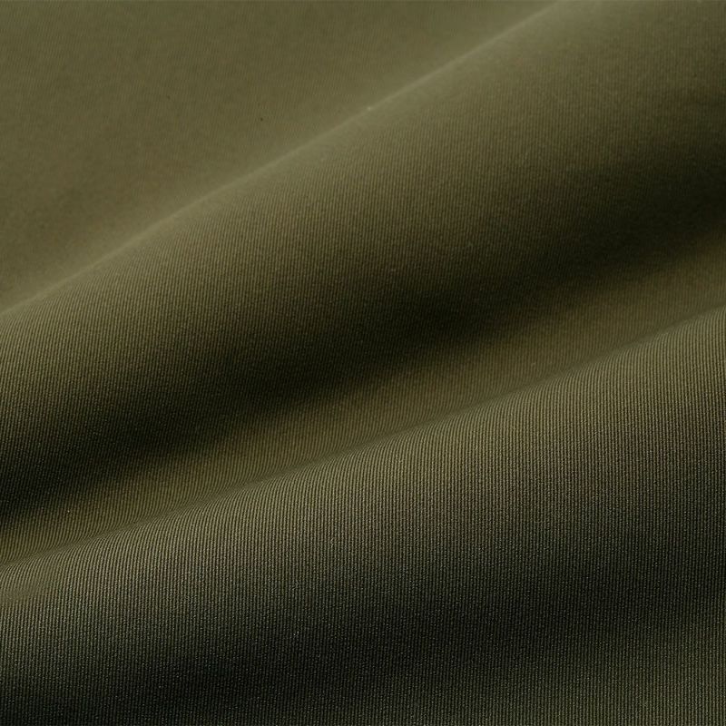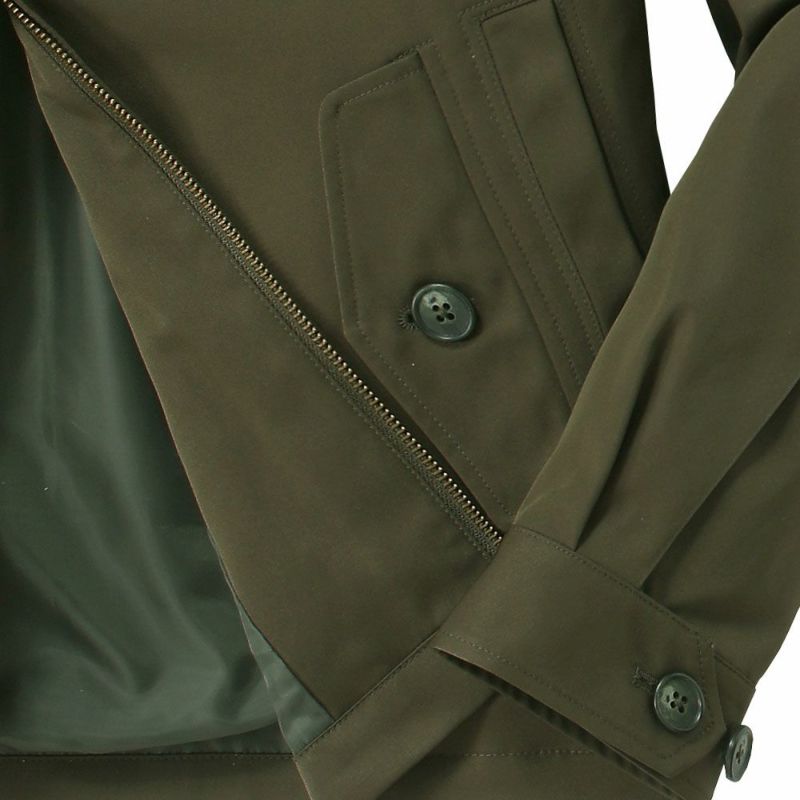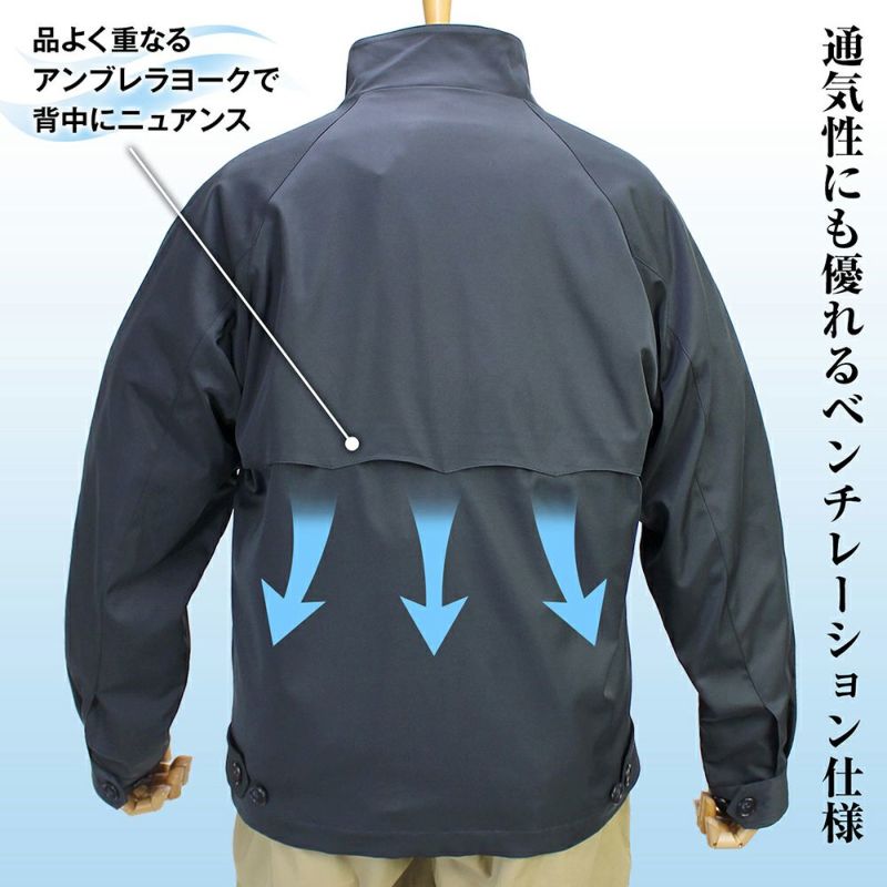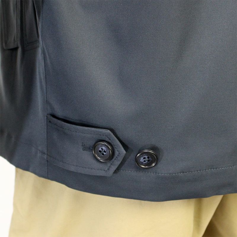 肩や腕が動かしやすいラグランスリーブ仕様。襟元はドッグイヤーカラーで、ボタンを留めればスタンドカラーとなり、風の侵入を防ぎます。