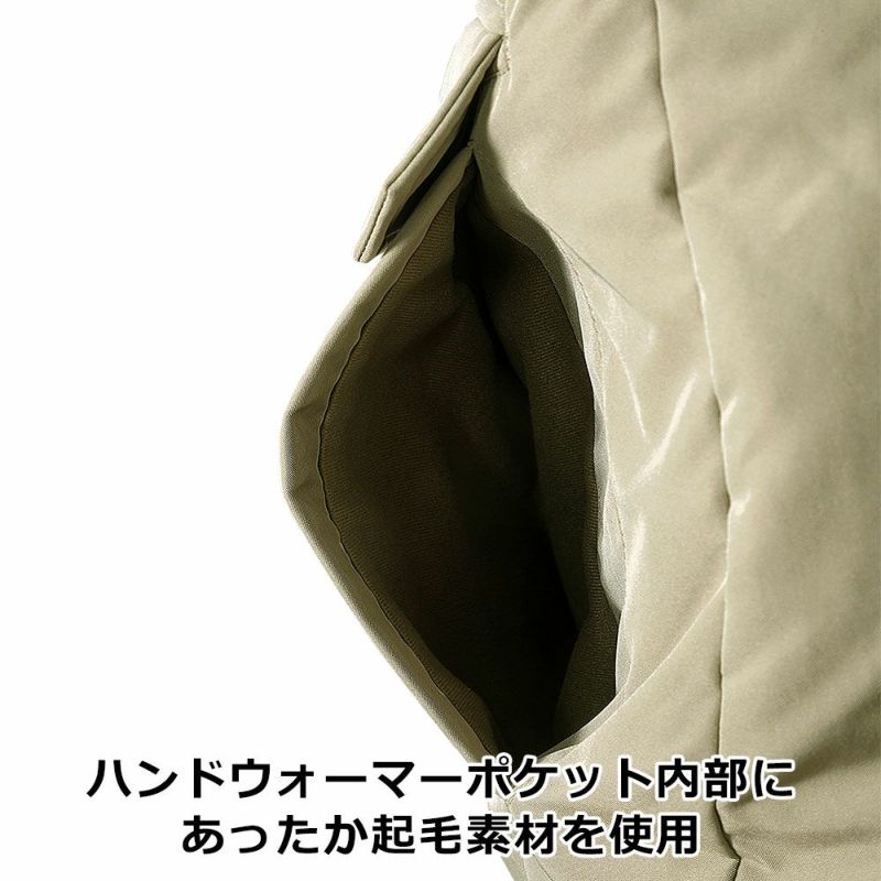 ダウン90%+フェザー10%の高品質・高混率ダウンを使用して暖かさも抜群。生地には撥水加工を施し、多少の雨や汚れをガード。ちょっとしたお出かけから旅行まで、幅広くご利用いただけます。