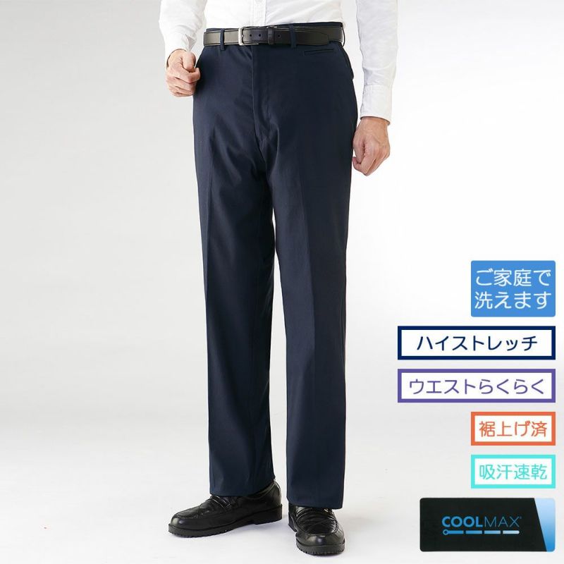 メンズ/ノータック/裾上げ済み/のびの~び快適COOLMAXスラックス