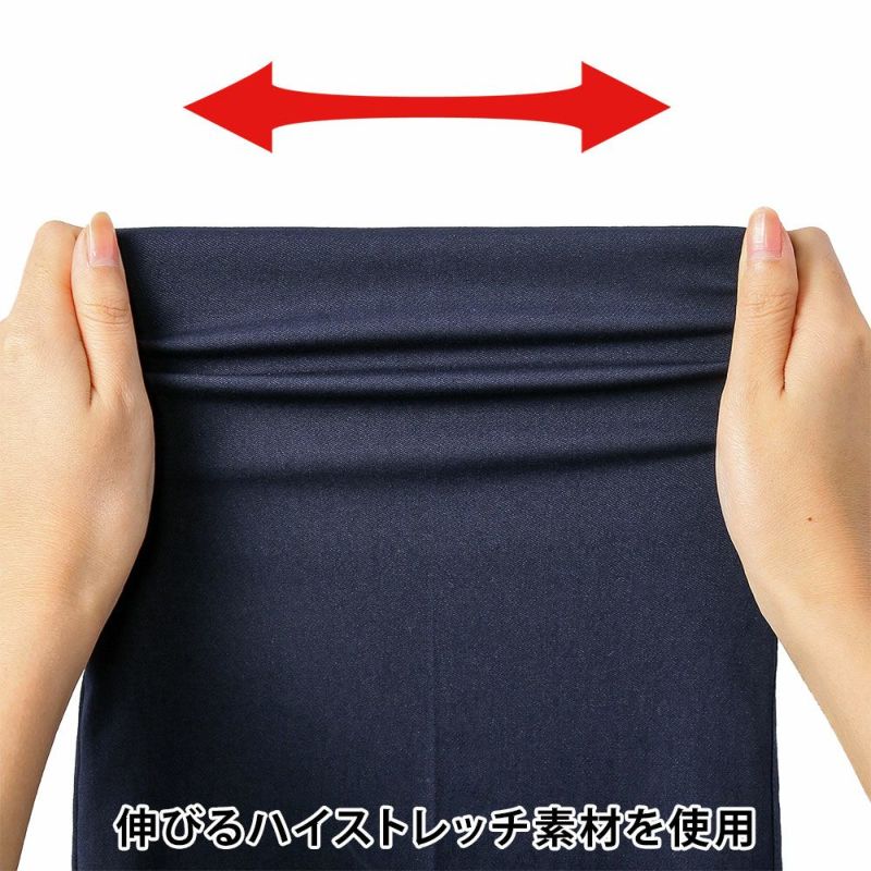 ハイストレッチ素材を使用しているので、生地が伸びてアクティブな動きにも難なく対応。ウエストも伸びてお腹周りも楽々快適です。