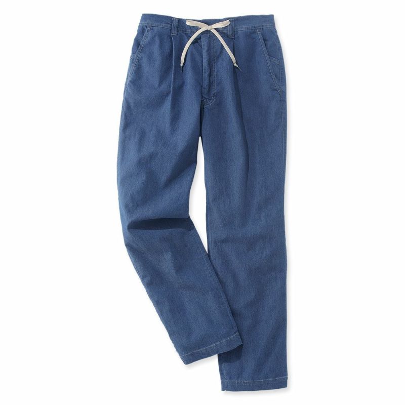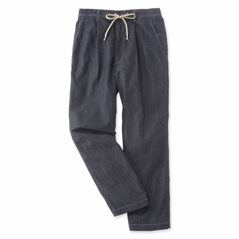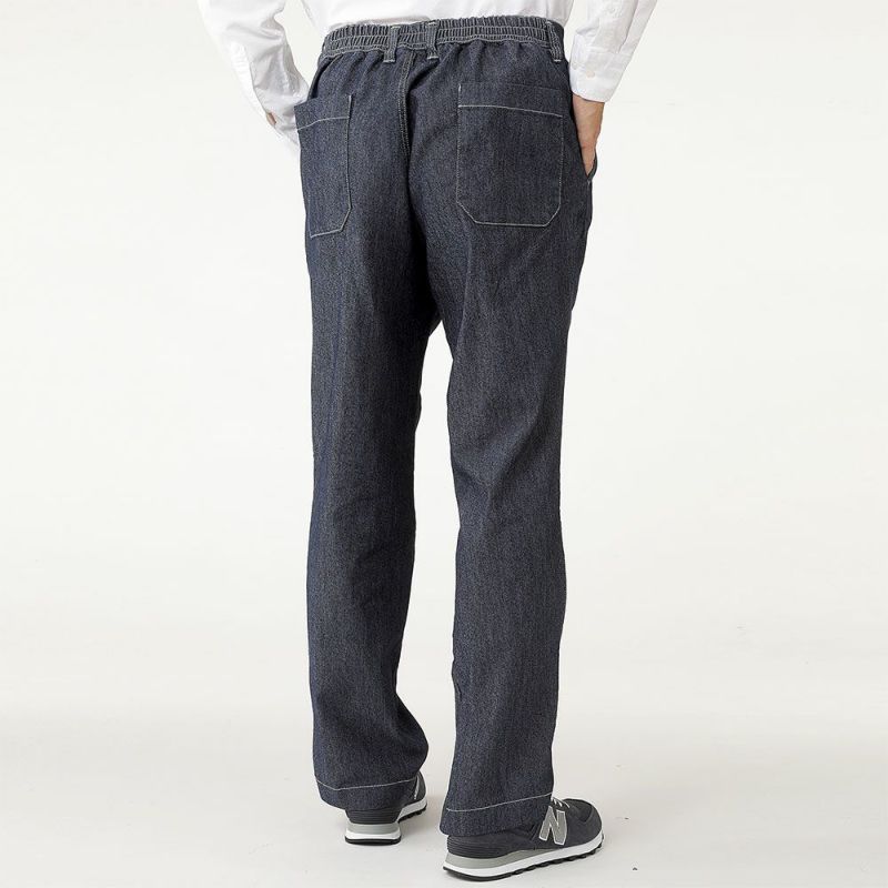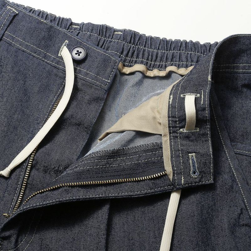 ゆったりと締めつけ感なく着用できる快適な穿き心地のデニムイージーパンツ。
