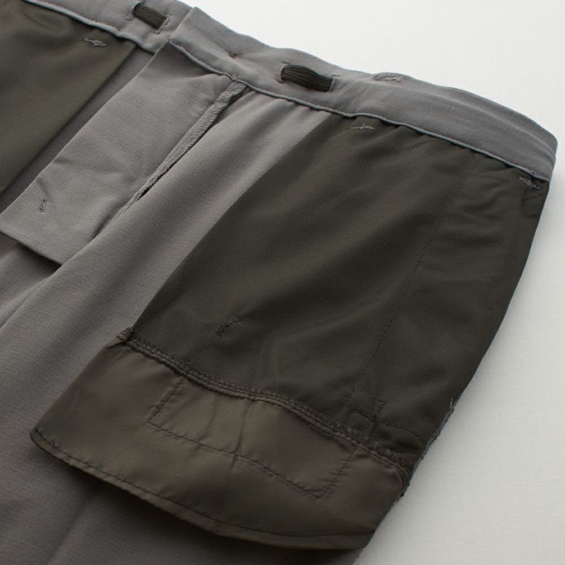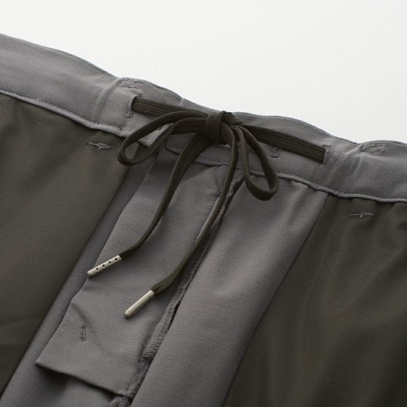 通常の横ストレッチに加え、縦方向にも伸びるストレッチ素材を使用。ウエストは後ろゴム、さらにドローコード付きで胴囲に合わせてサイズ調整可能です。
