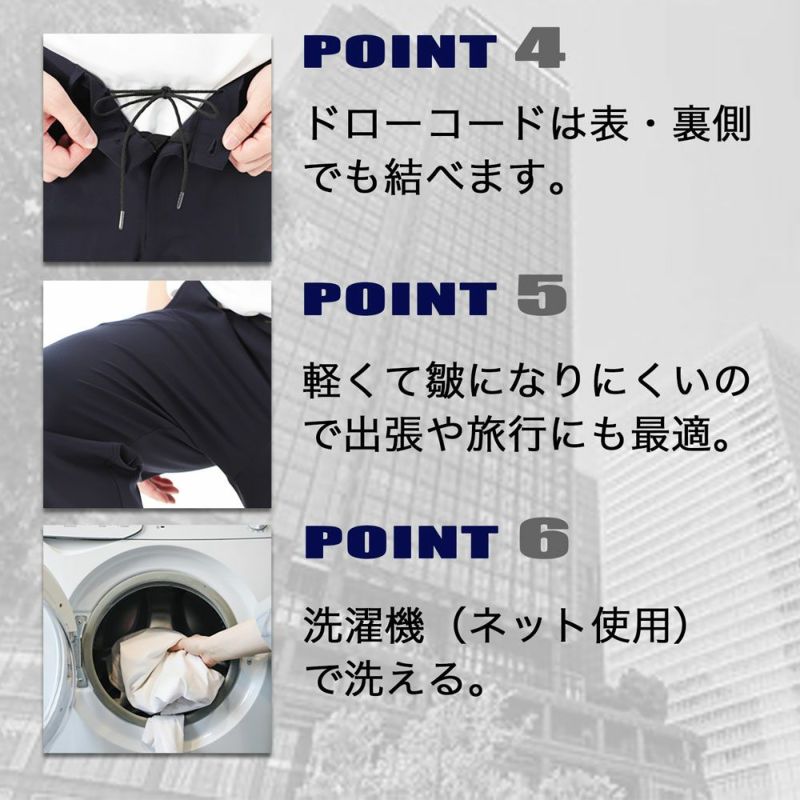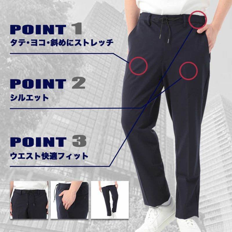 生地が縦横にストレッチするので、アクティブな動きにも難なく対応。また、ウエストは脇ゴム、さらにドローコード付きで胴囲に合わせてサイズ調整可能です。