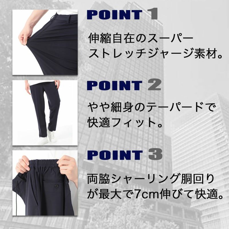 柔らかなジャージ素材を使用したイージーパンツ。スタイリッシュでスリムなシルエット。