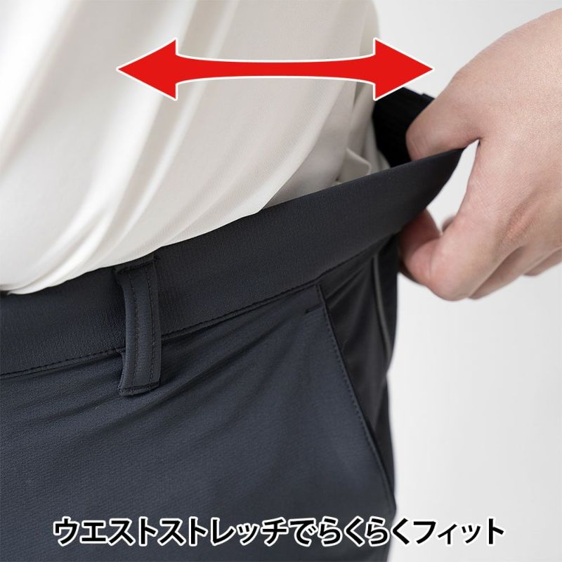 生地は縦横にストレッチが効いているので、スイング時の激しい動きにも対応。さらにウエストもストレッチするので快適な履き心地です。
