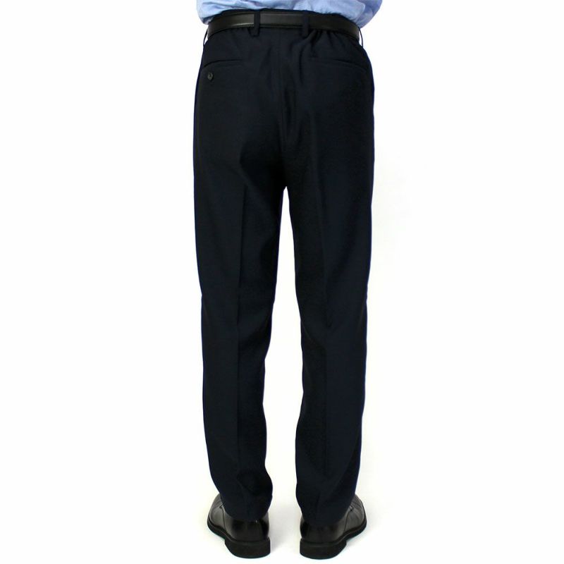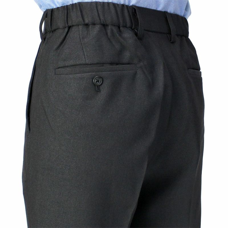 ウエストらくらくで穿きやすいノータックスラックス。合わせやすい無地タイプのスラックスです。