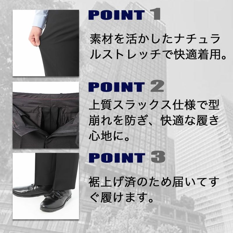 3. メンズ/ノータック/裾上げ済み/無地ビジネススラックス