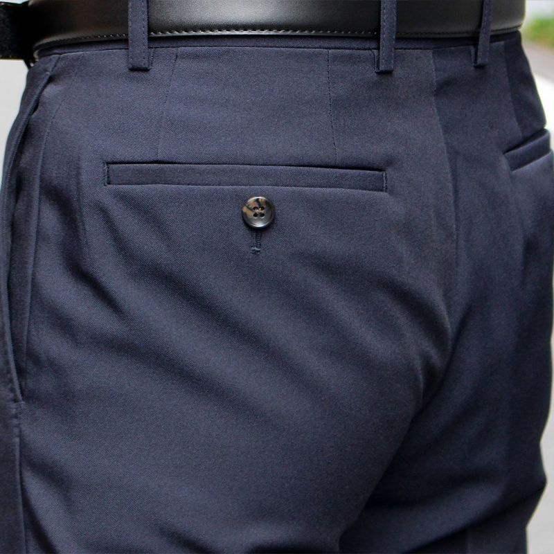 非常に上品な紺色であり細めのサイズ構成も実にスタイリッシュで大変気に入りました。裾上げが施されているので、購入後のリフォームに費やす時間と費用が掛からないのは誠に有難い。注文から2日後に商品が届くという点を含めて、同社の対応及び購入した商品を高く評価する。