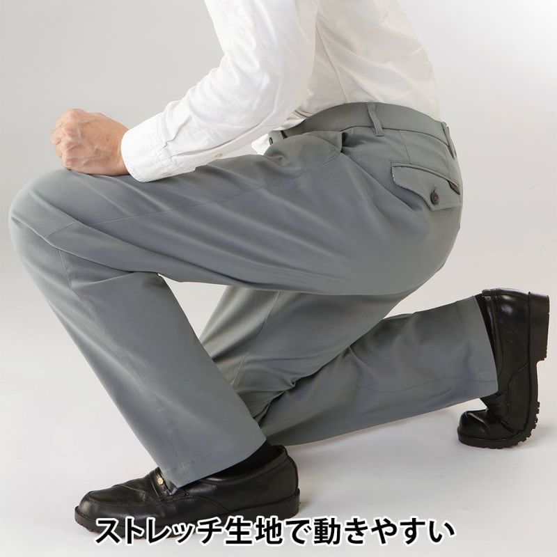 メンズ/ノータック/裾上げ済み/接触冷感DRYウエストストレッチスラックス