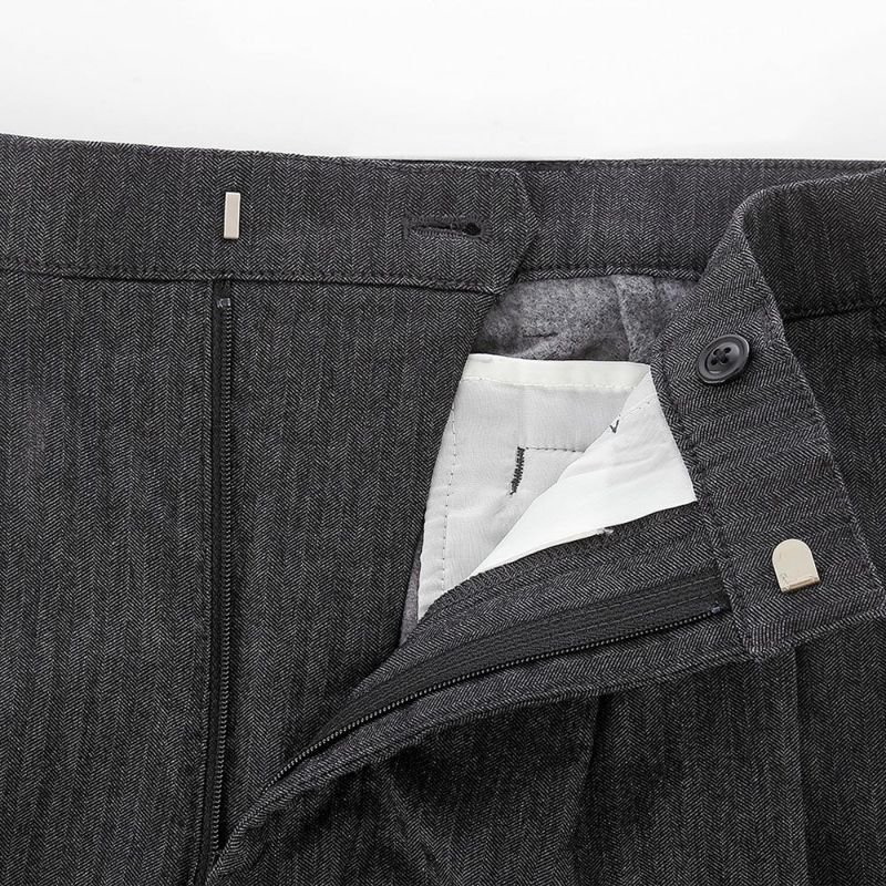 杢調のヘリンボン柄が上品で落ち着いた印象で、大人の渋い魅力を引き出してくれます。