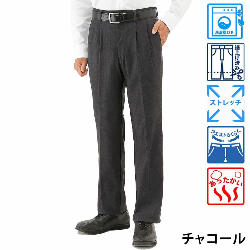 メンズ/ツータック/裾上げ済み/のびのび裏起毛スラックス