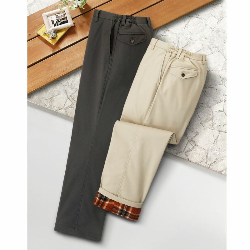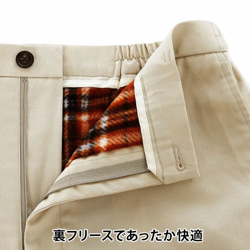 裏地にフリース素材を使用した、寒い時期にもあったか快適なスラックス。ノータックですっきりとしたシルエットです。