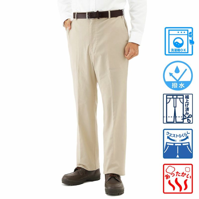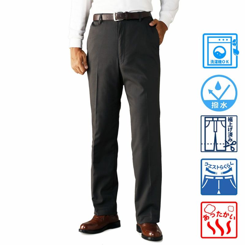 メンズ/ノータック/裾上げ済み/フリースあったか撥水スラックス