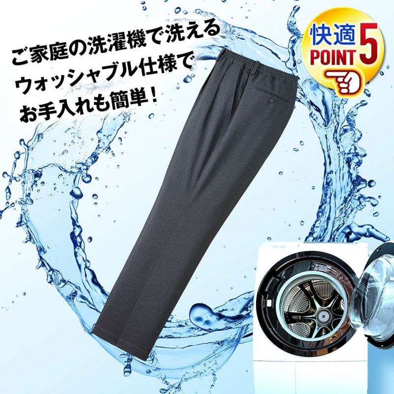 ゆったり広めの寸法と簡単に脱ぎ着が出来る細かな作りで、どんな方にでもお使いいただけるユニバーサルスラックスです。
