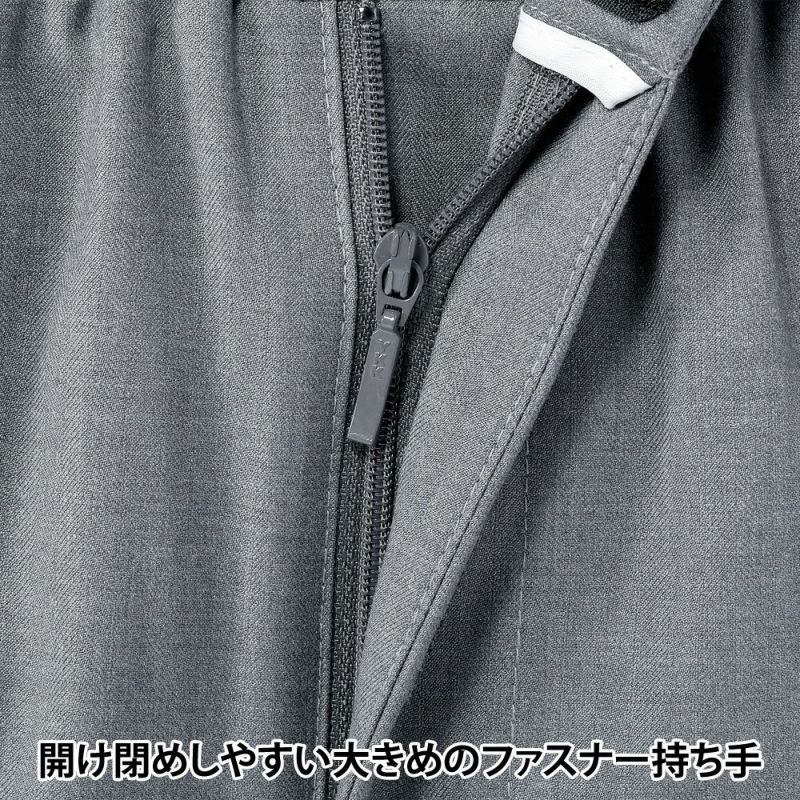 ウエストを留める部分が前カンやボタンでは無く、マジックテープのため脱ぎ着も容易です。また、ファスナー持ち手が大きめなので、チャックの開け閉めも楽に行なえます。