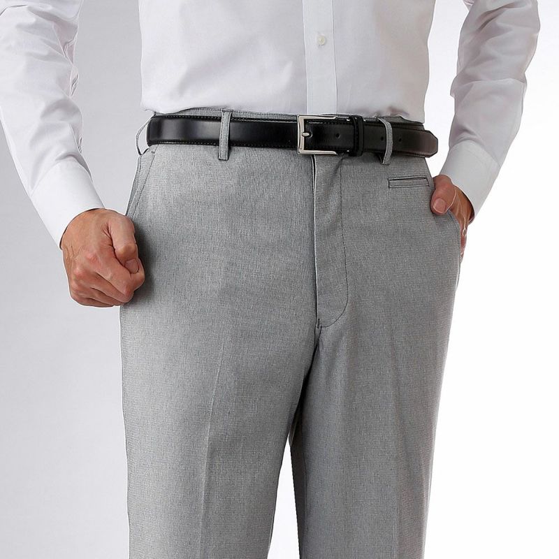 3. メンズ/ノータック/裾上げ済み/接触冷感/ウエストストレッチスラックス2色組
