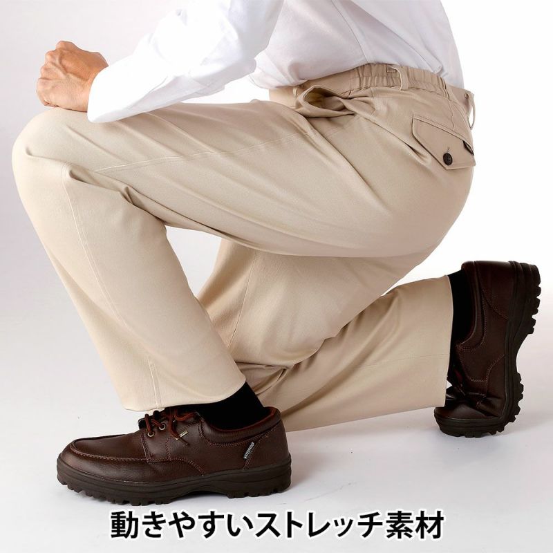 ウエストは脇ゴム仕様なので楽々快適。さらに生地はストレッチ素材なので、体の動きをスムーズにサポートします。