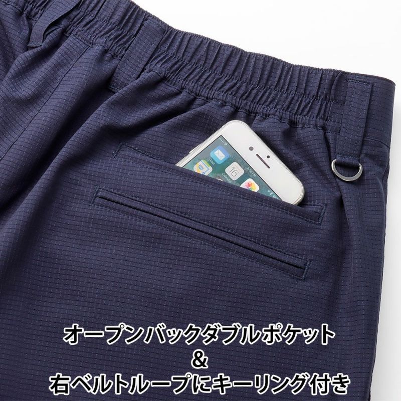 風が抜ける機能性素材のクールドッツパンツ。長パンツなのに、まるでハーフパンツのような涼しさが実感できます。