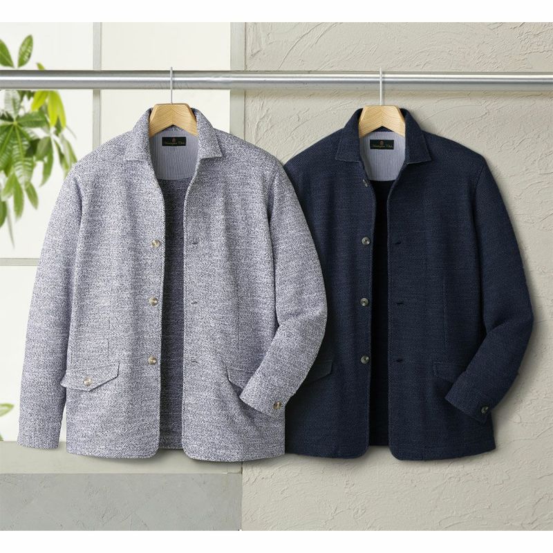 大人の休日カジュアルにぴったりなニットジャケット。ざっくりと編まれたニットがこなれた雰囲気を醸し出します。