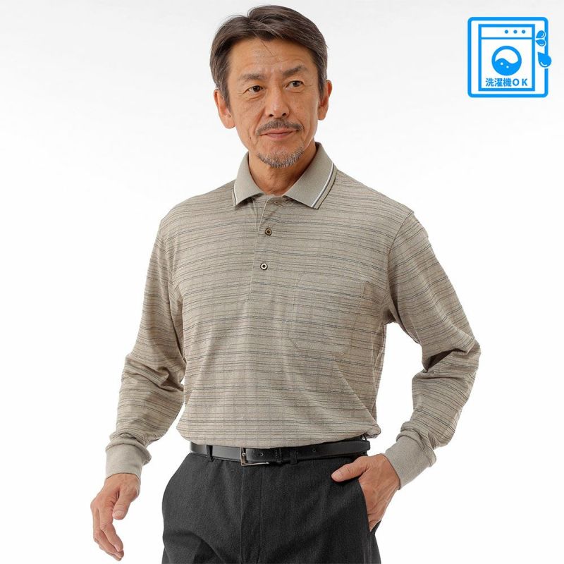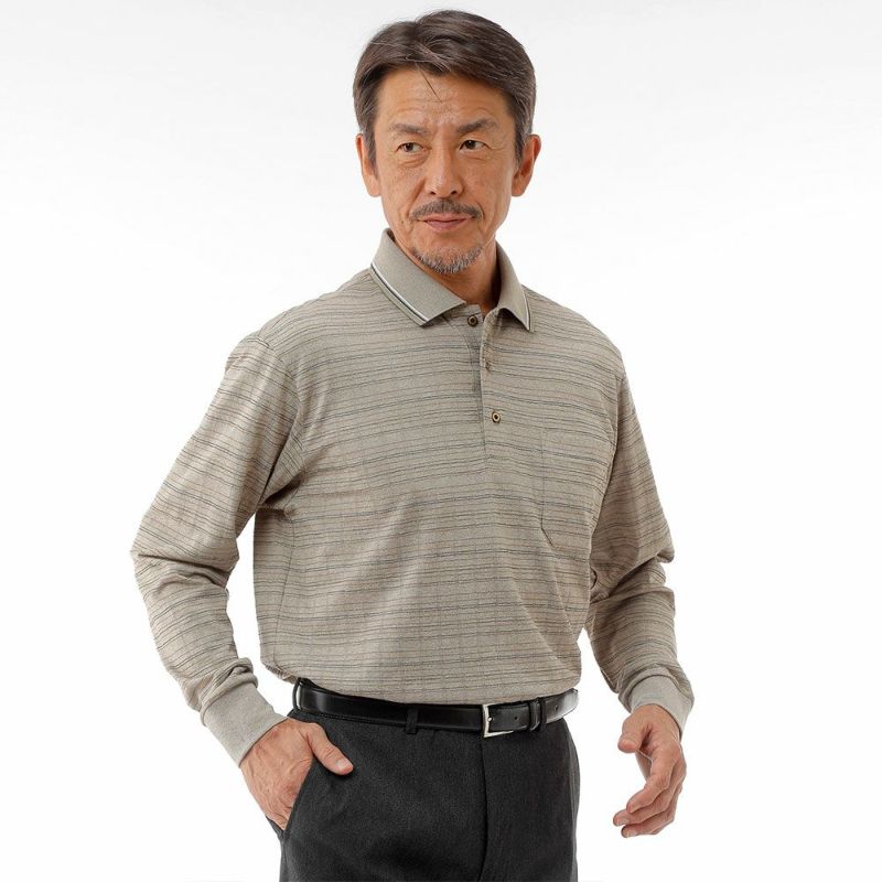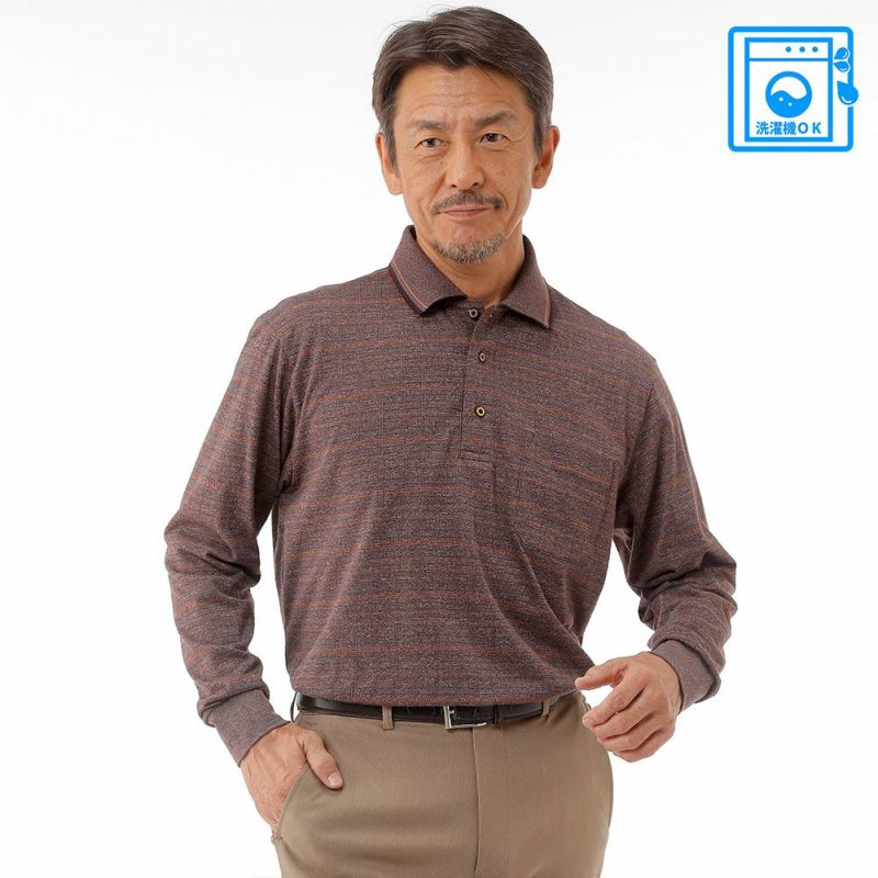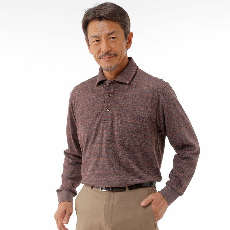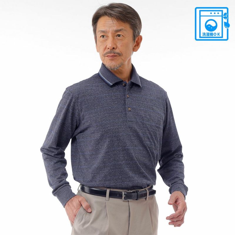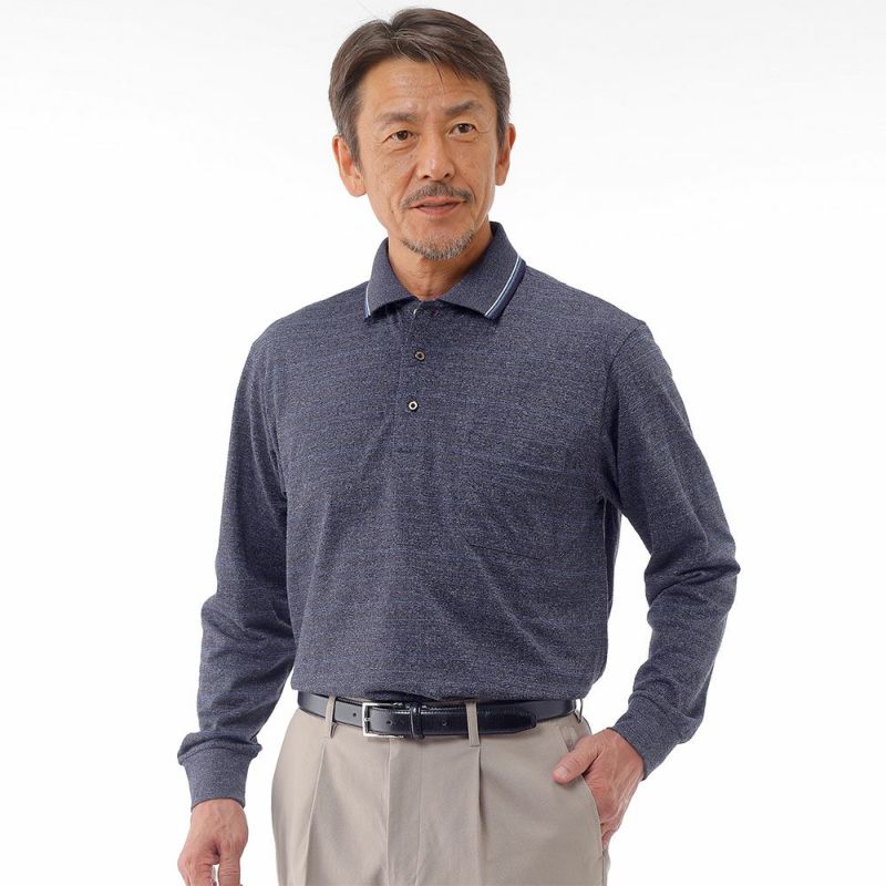 メンズ/杢調ジャカードチェック柄長袖ポロシャツ3色組