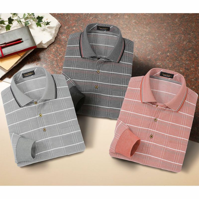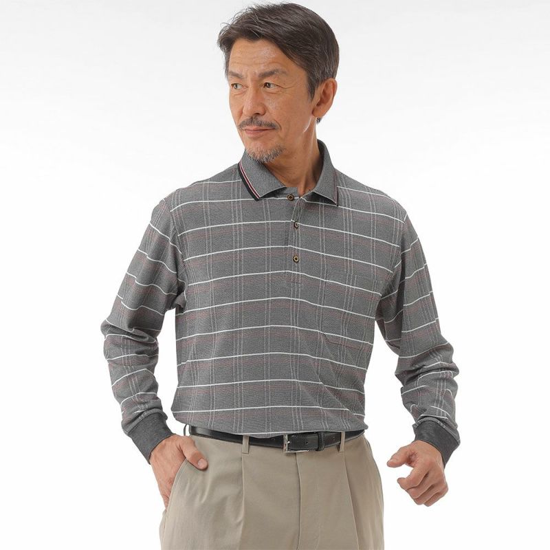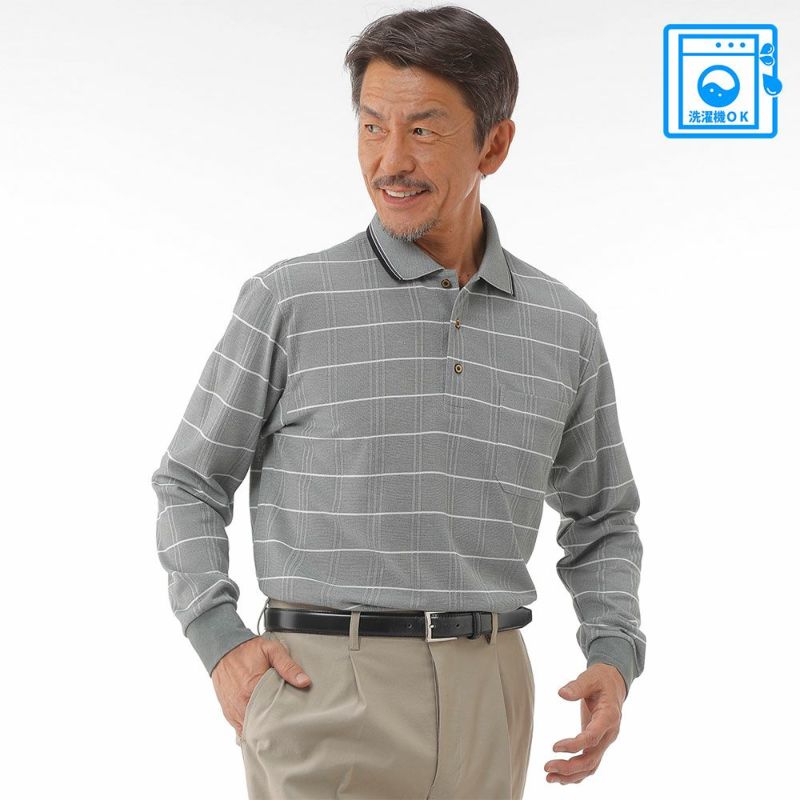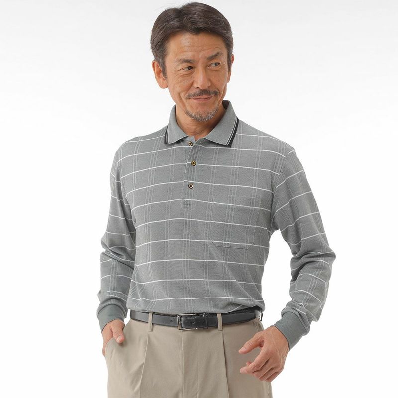 先染めならではの上品な色合いの長袖ポロシャツ。