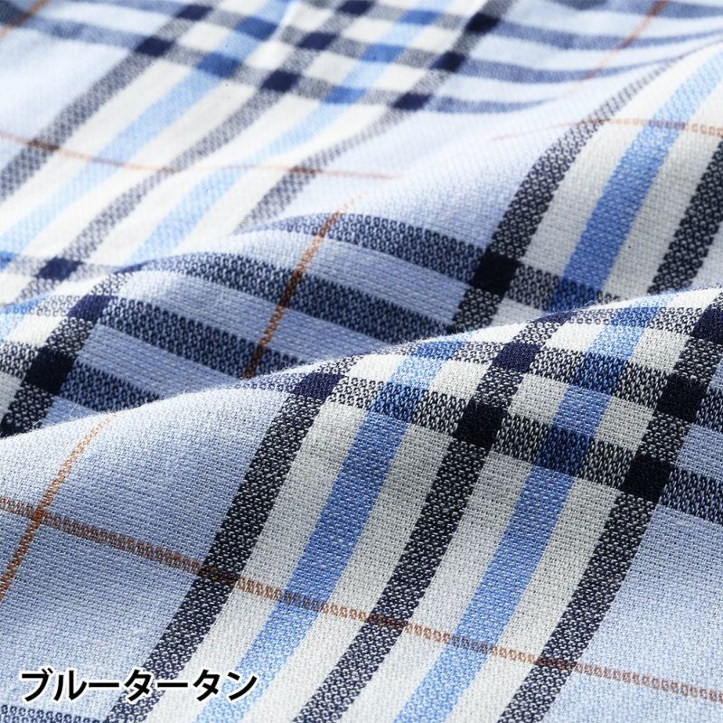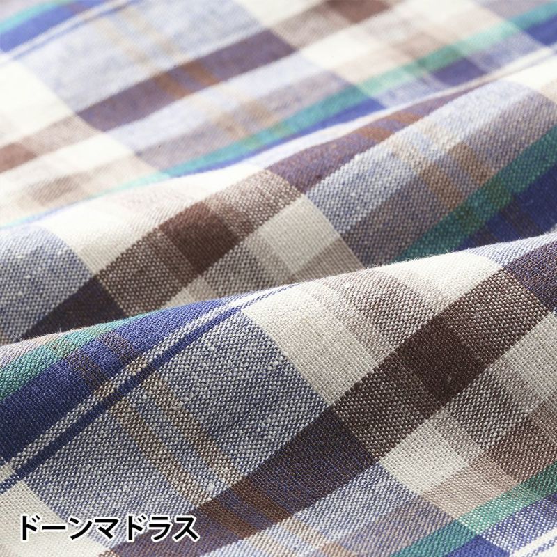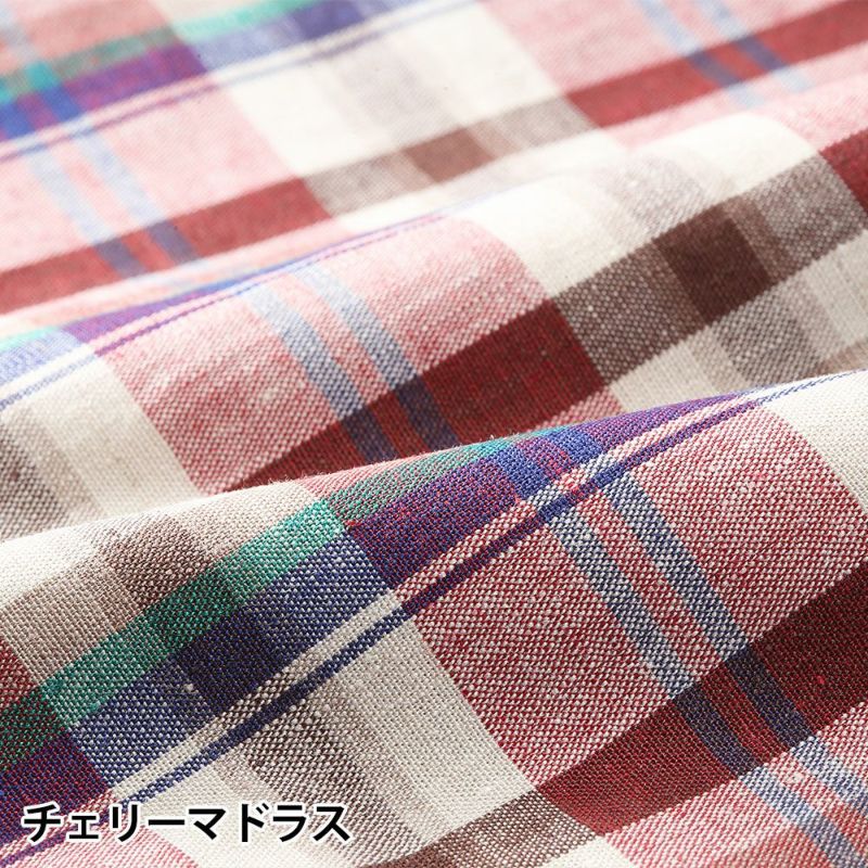 素材:ギンガムブルー/ギンガムグリーン/ネイビーチェック/ベージュグレン/ブルータータン/ローズマドラス/マルチストライプ/ブルーヘアーライン=綿100%、チェリーマドラス/ドーンマドラス=綿70%+麻30%、白黒グレン=綿78%+麻22%