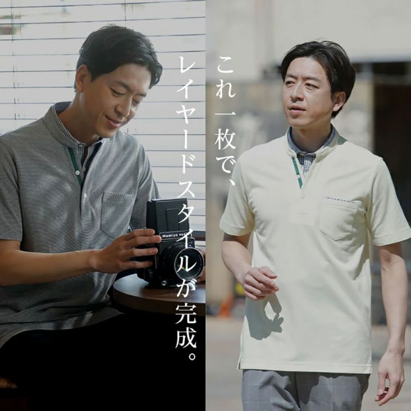 3. メンズ/抗菌防臭/重ね着風DRY半袖ポロシャツ