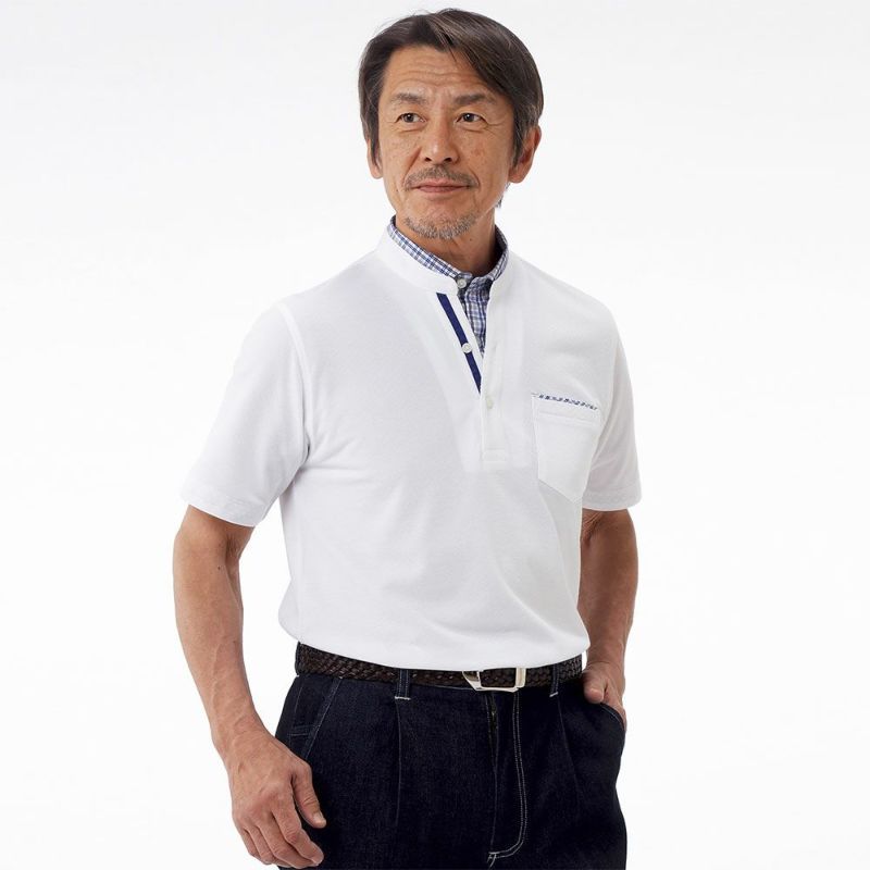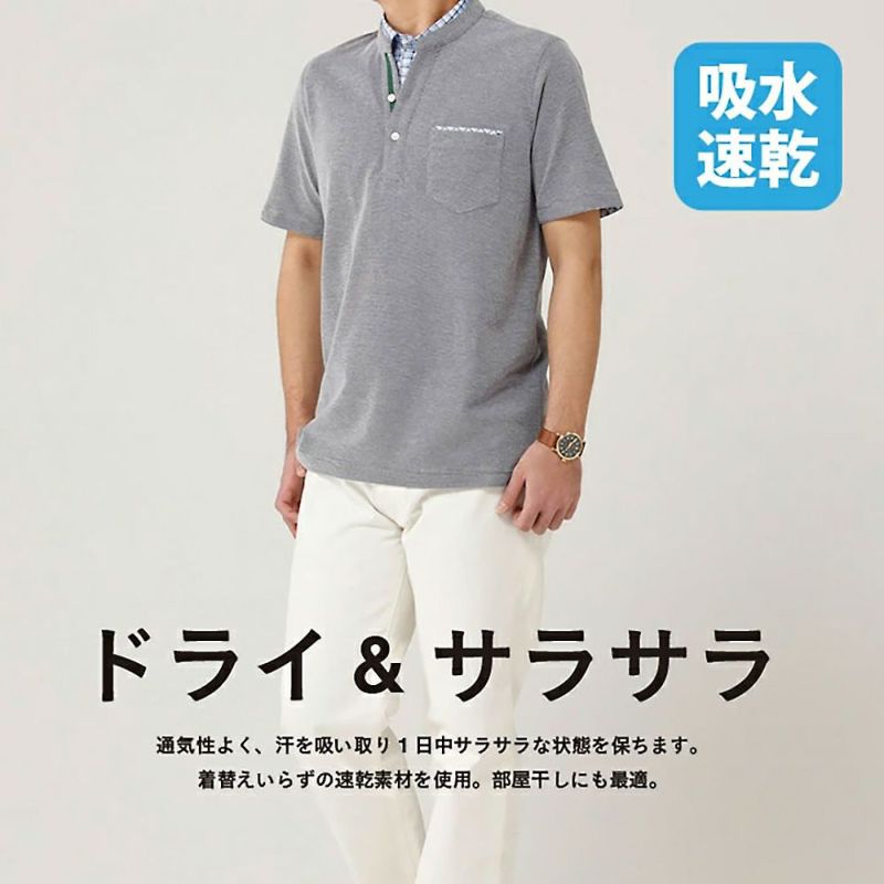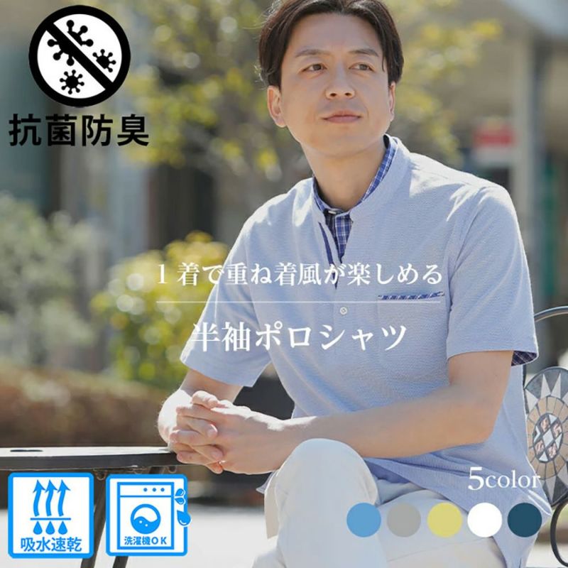 メンズ/抗菌防臭/重ね着風DRY半袖ポロシャツ