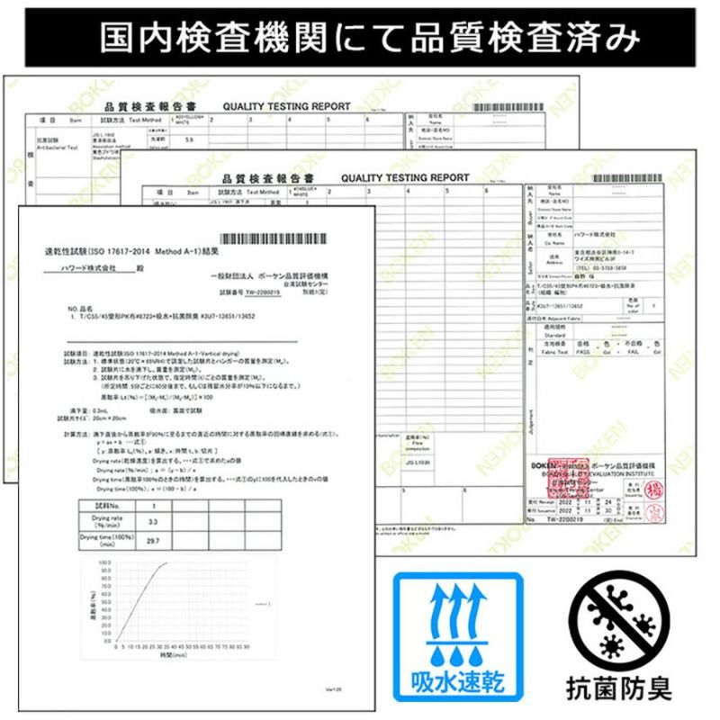 吸水性に優れた素材のため汗を素早く吸収し、汗ばむ季節もさわやかに着用できます。また、速乾性もあるため洗濯後にすぐ乾きます。